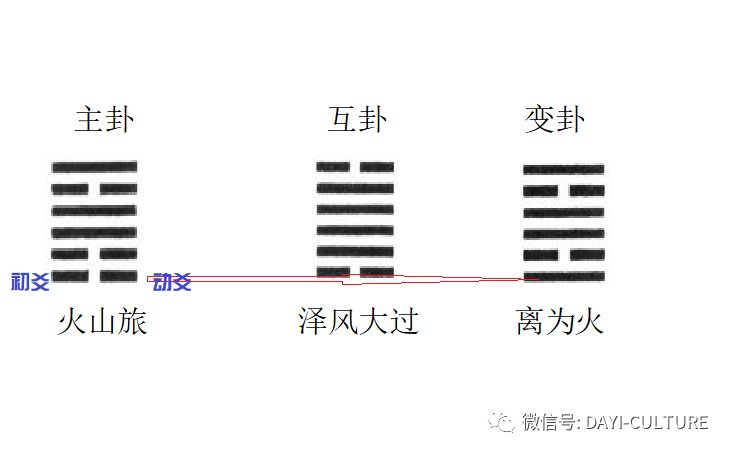 例1:某男摇卦测父亲病,得主卦为火山旅,变卦离为火,互卦泽风大过。