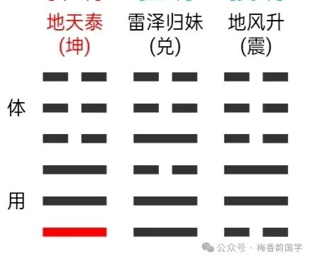 比如地天泰卦变地风升卦,初爻由阳爻变阴爻。