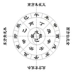 甲乙东方木,丙丁南方火,戊己中央土,庚辛西方金,壬癸北方水。