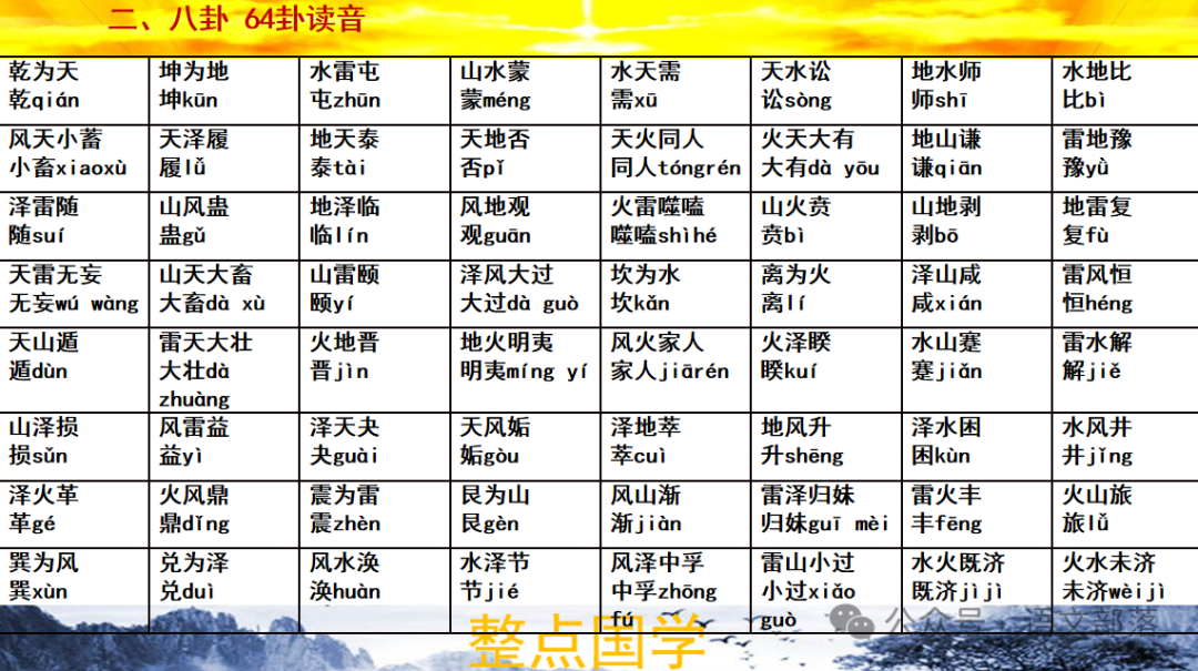 参照六十四卦读音,填写下表,最好能画出相应卦象