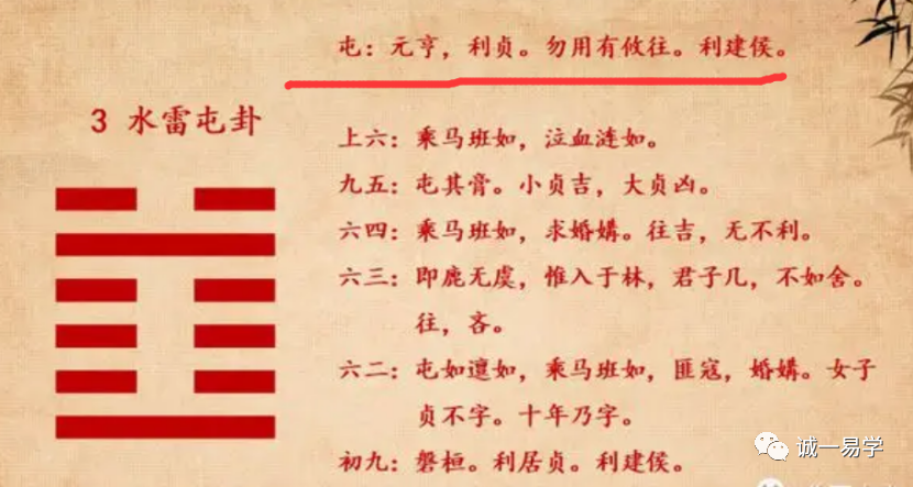 卦画是爻组成的六爻卦,屯是卦名,水是上卦坎,雷是下卦震。