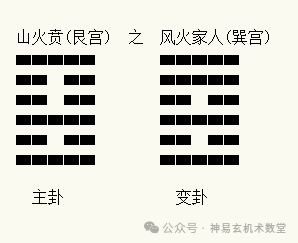 神易玄机解析:山火贲之风火家人,互雷水解。坎生震巽生离生艮,艮为少男,少男得到生扶是好事,按原始的梅花断形式,体卦就是少年男子,巽卦生入,震为动,离为喜事,动而成喜,震巽一夫一妻,离为喜,坎为酒,自然是成亲之象,但由于艮在主卦,艮为定,最终才是巽入成家。此外壬申日,午时为吉,离方午为吉。无论是卦,还是时方,两点皆为吉。艮为定为止是耗泄离火,需要克制弄走,所以坎六震四艮七,合得十七数,十七日内。