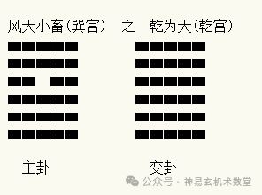 神易玄机解析:风天小畜之乾为天,互火泽睽。体卦乾非常旺盛,本应该论吉,但实际乾生坎生巽木生离火,最终离克乾,所谓不吉。离火、巽木、坎水,有柴火烧水烹鸡之象,兑为吃食为屠杀也为鸡。加之爻辞不吉。此外甲申日,卯时为吉,乾方戌吉,亥灭。时方半吉半凶。按照巽五离三兑二,合十数,为十日期限。
