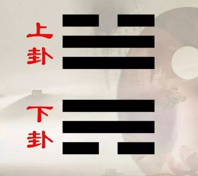 怎么看过程呢?我们将前面的主卦掐头去尾,将最下面的初爻和最上面的六爻丢掉不用,然后将234爻组成一个新卦作为下卦,将345爻组成一个新卦作为上卦,两个卦叠加在一起成为一个新卦象,这个卦象就代表了事情发展过程,叫做“互卦”。
