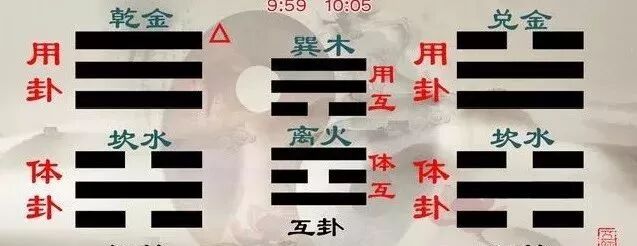 我邀约客户的聊天时间是9:59,发错信息的时间是10:05,于是我通过这两组数字进行起卦。9作为第一个数字,59我把两数相加得14作为第二个数字,1005四个数字相加得6作为了第三个数字。