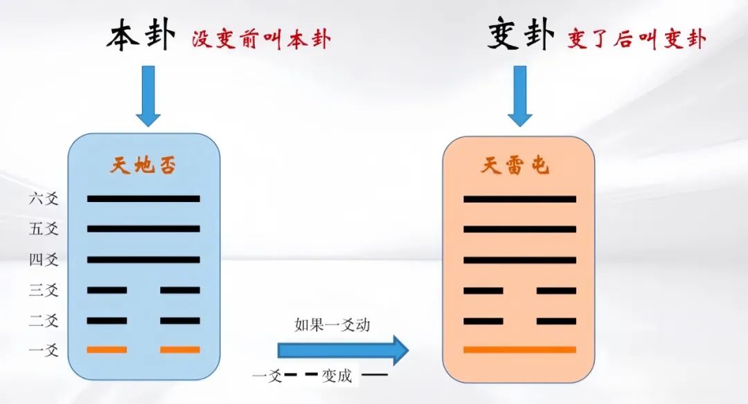 动爻没变前的卦,叫本卦,动爻变了以后的卦,叫变卦。