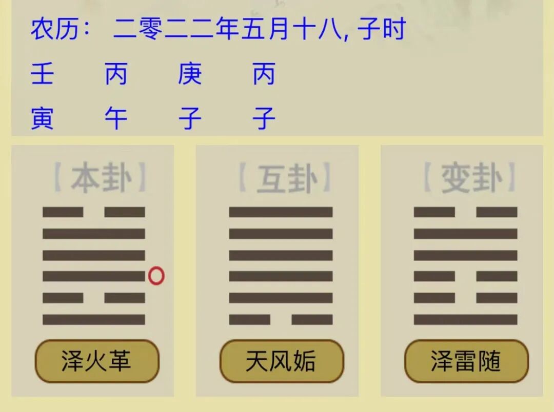 主卦(本卦)为事情的开始,互卦为事情的变化过程,变卦为事情的最终结果。