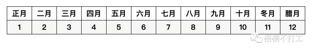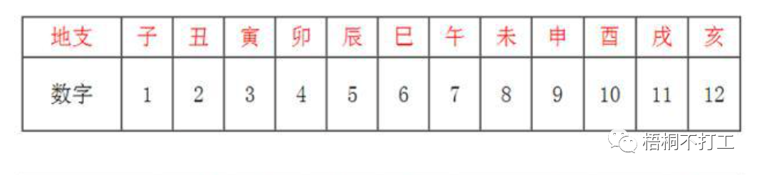 十二年支子、丑、……、戌、亥对应的数字依次为1、2……11、12,如下表