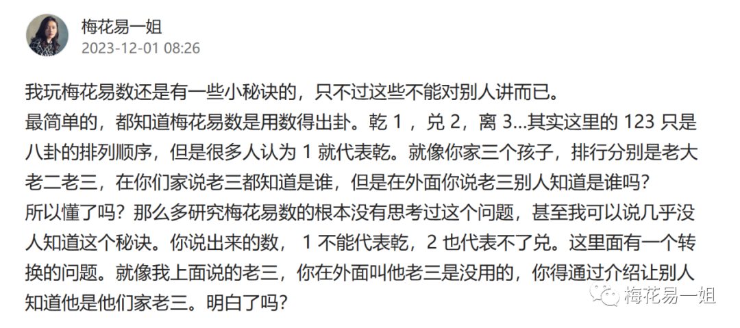 之前我发了一条关于梅花易数用数起卦的内容,大致是讲卦与数的关系。