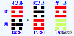 又或者,要是卦主穿着的衣服色彩,很明显,也可以换卦,比如红色上衣、黑色裤子,则直接对应上卦离卦,下卦坎卦,构成《火水未济》,然后离3坎6,相加为9,爻以六除,这里直接减去6就可以,余3数,则三爻动,为《火风鼎》的卦象,互卦《水火既济》。