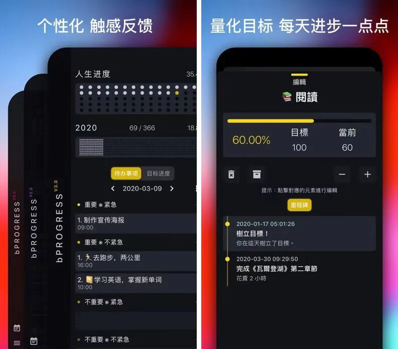 - 目标进度支持【里程碑】功能,可以用来记录重要时刻、重大突破等信息