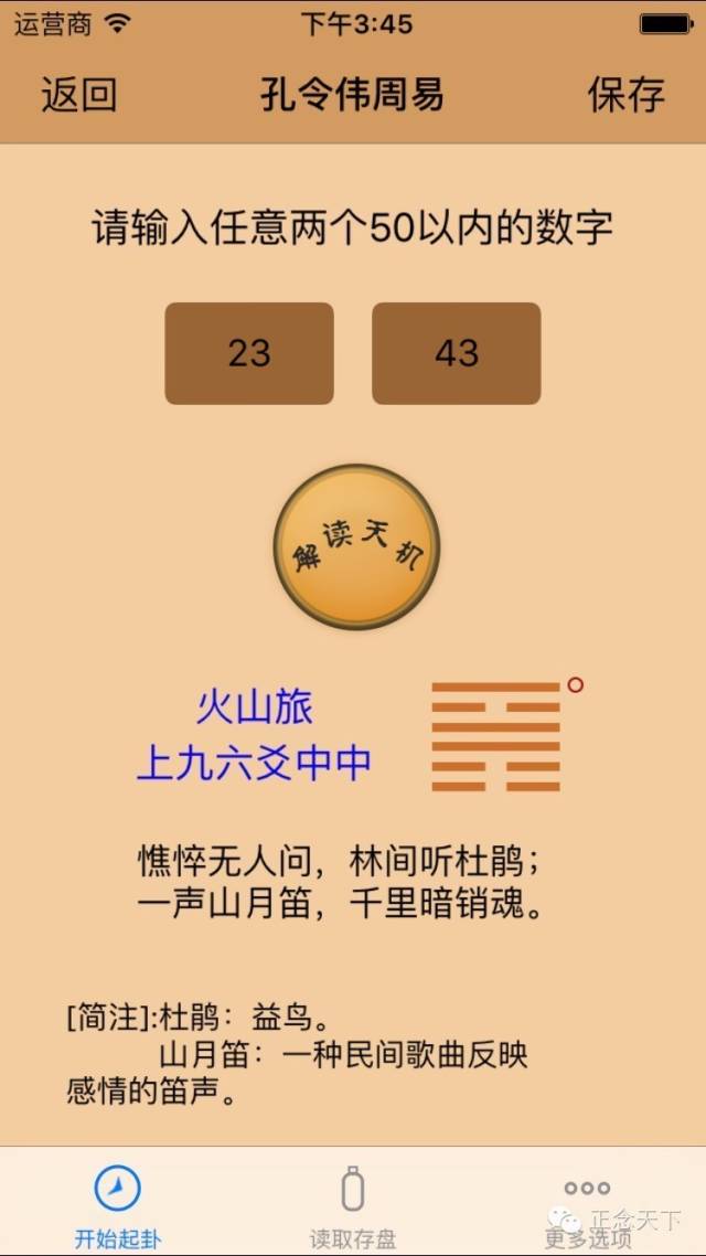 ③报数起卦,输入任意两个数字,即可起卦,字占可用此方法实现;