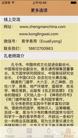 《孔令伟周易》是非常专业、非常精准的周易实用软件,是在著名的易学实战专家孔令伟老师指导下,运用博大精深的易学理论研发而成。《孔令伟周易》让您在命运的洪流中,把握事态走向,做出正确决策,避免少走弯路,找到成功捷径。