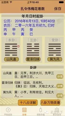 2.准确性。天行有常,万事万物都有其运行的规律,此款软件便是凝聚易学的精神,从专业的角度对事情进行预测,通过卦象、卦辞及专业的解卦,探知到事物的走向,触摸到冥冥天机。