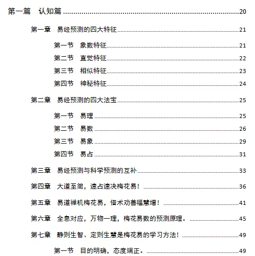 人生在世,不如意之事十有八九,家家都有难念的经,人人都有心伤的事。易经中有为人处世的大智慧,也有察往知来的高科技,是化难为易、化繁为简的真学问。根据本人多年预测的统计,整理了人们最需要预测的三十个项目分类论述,意在方便同学们在实际预测中查阅参考,不必重点学习。 因为人生百态,世事万千,虽同为一棵树的叶子,却很难有完全相似的,所谓一母生十子,十子各不一,十人做一事,各各不相同。应用时切忌对号入座,一定要根据实际情况灵活应用,分别视之。预测之道要以易理为体,易象为用,易数为根,易占为术,通过八卦为基础,五行为变化,天人合一为信息,推断出所占人事物的关系及其发展趋势,为求测人提供最优的决策参考。运筹帷幄,速占速决,开启你命运的决择之旅吧!