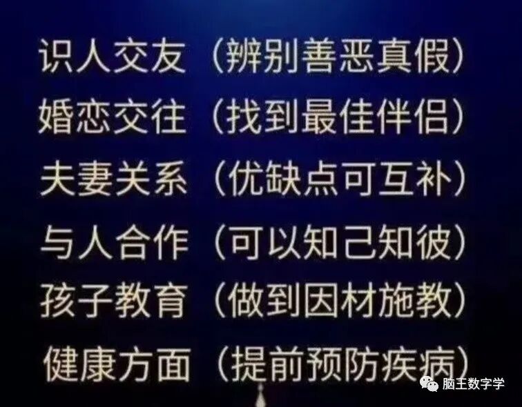 而中国对“数”的认识起源于河图、洛书,《周易?系辞传》:河出图,洛出书,圣人则之。据考古资料考证河图起源应该在七千年前《汉书律历志》曰:自伏羲画八卦,由数起。象、数实为一体,数以征象,象以定数。在东方,我们的老祖先也提到了数可以代表象,万事万物皆可由数表示。古代北宋时期易学大家邵雍的《梅花易数》,是数字应用预测术非常好的方法现代李山玉提出的《八卦象数疗法》,也是数字应用的新思路。所以,数字是有能量的,无论电话号码,手机号码,车牌号码,身份证号码等等,这一切只有你在使用的数字一定会对你的运势产生某种影响,只要你细心体会,都会感受到其中的能量。也许你不相信,经常听老人说,“前不栽桑,后不插柳,中间不种鬼拍手。”应该很多人听过吧,为何老人这样说呢?按照传统讲,“桑”通“丧”,表明不吉,门前若种了桑树则家中会有人死去。你说它迷信吗?非也!这是民俗,这是传统,自古就这么定的,可是如果你家门前真要是种了棵桑树,未必死人!这又是怎么回事?因为知道这层老理儿的人随着时代的变迁越来越少了,你家门前种的是什么树都没几个人清楚,够不成“前不栽桑”的意识磁场,所以你家未必死人,树种到美国照样没人死,你想啊美国老哪能理解咱们中国这博大精神的文化呢!可是你要是懂这个理儿,千万别种这桑树,强大的意识形态流会把你折腾死的。学习数字传说后,我已预测近千个号码,可以说测一个准一个,篇幅所限不能在此一一例举。