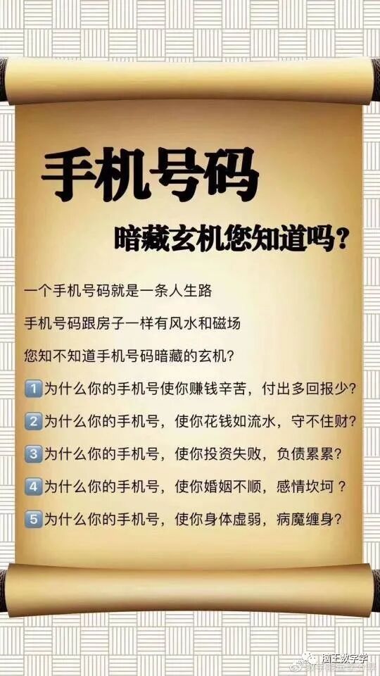 所以以前每班都有很多风水师来学习数字传说也就理所当然。朋友,如果你在众多的数字预测之间难于抉择,请你首选数字传说。因为有许多学过其他数字的人,因为不满意又回过头来学习电话号码预测,他们中有人学了电话号码预测后,晚上乐的睡不着觉;如果你还没有学过任何易学预测,或者学了多年周易预测目前还是一团雾水,到今天还不能预测,请您选择数字传说,因为它简单易学,又预测准确,而且改运有准。如果你实践了多次,通过风水改运后不见效果,和你在风水书中描述的神奇效果大相径庭,或者你被所谓的风水大师所骗,花了很多冤枉钱,于是你大骂周易都是骗人的,已对易学失去信心的话,请你再给自己一次机会,选择数字传说,因为她是可以让你看到改运效果的真正绝学。一个人如果长期使用一个手机号码,这个号码会影响使用者的运势。好的号码能够对人起好的诱导作用,并给人带来好运;而不好的号码也会给使用者带来坏运。一个手机好码是好是坏主要看最后四位数,由于最后四位数反映了使用者本人的信息,前面的一般反映的是批号信息或地区信息。当然号码的信息对车牌号,甚至门牌号也同样适用。天价号码隐藏的无形杀手据网上流传的消息,有少数人在炒高价号码,十分吸人眼球。于是,有人就花了高价买了这些所谓的好号码。