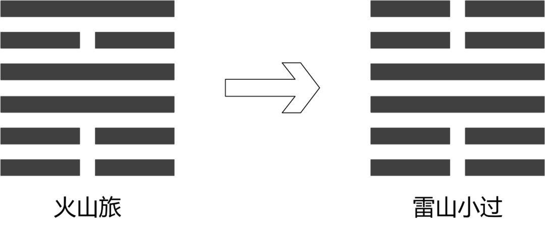 变卦是整个事件最终变化的结果。《火山旅》四爻动,变《雷山小过》。旅的结果是小过。05