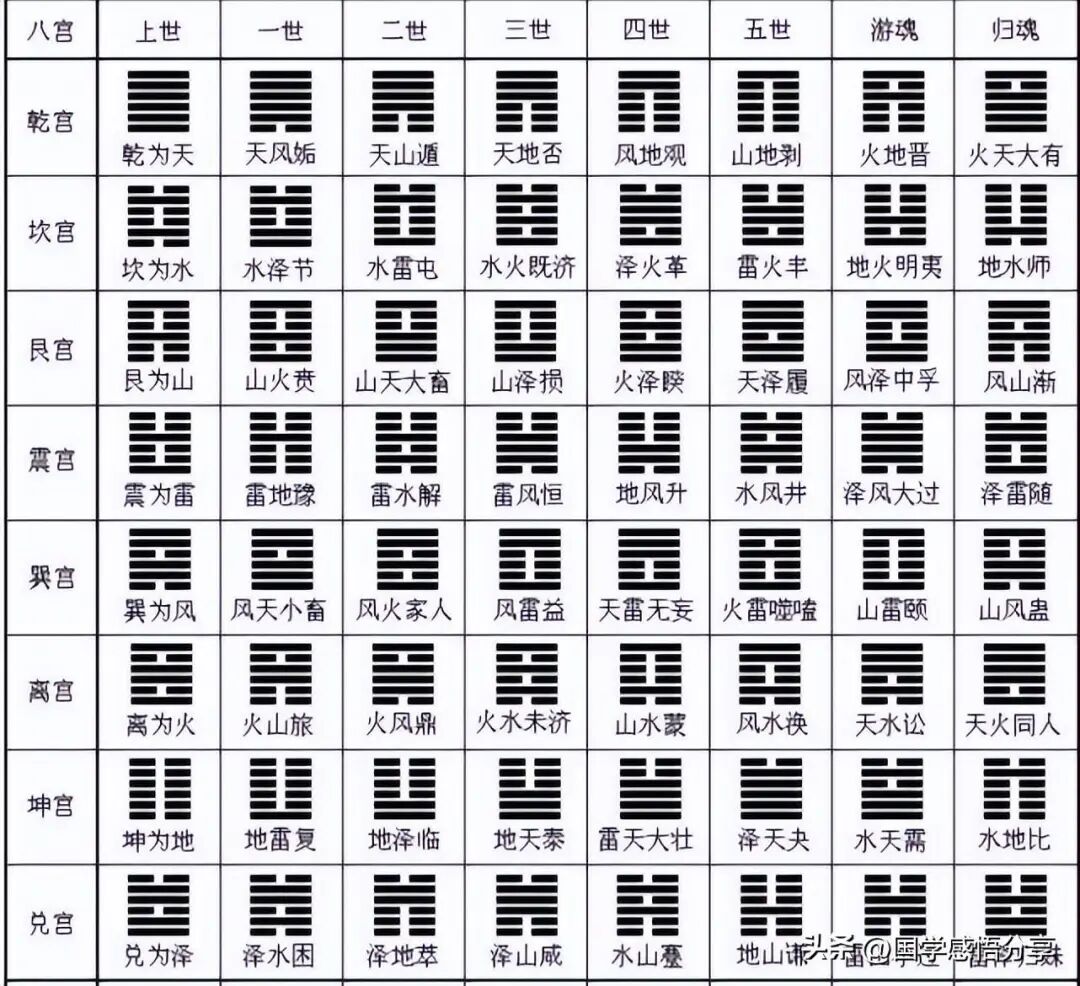 知道了初爻是阴爻或者阳爻,并且记下数字。再重复前面三次得到一爻的过程五次,得到由下往上的五爻,六爻要经过十八次运算,最后终于得到一卦,那么这个卦我们叫做本卦。