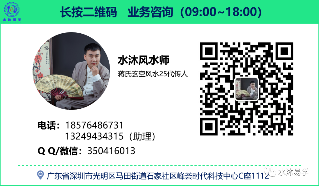 水沐,蒋氏玄空风水第25代传人,玄空风水师,硕士学历,习易十年,多年研究并践行易学,风水实战派。师承多位易学名家,以玄空风水为根基,专注阴阳宅风水——寻龙点穴、蒋氏三元玄空风水、玄空飞星风水以及阴阳八卦风水、专业择日。
