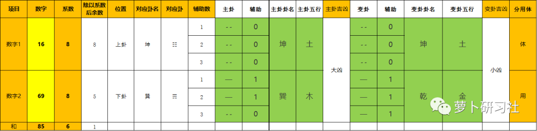 定吉凶比较复杂,下载表格来研究,这里给出辅助表。