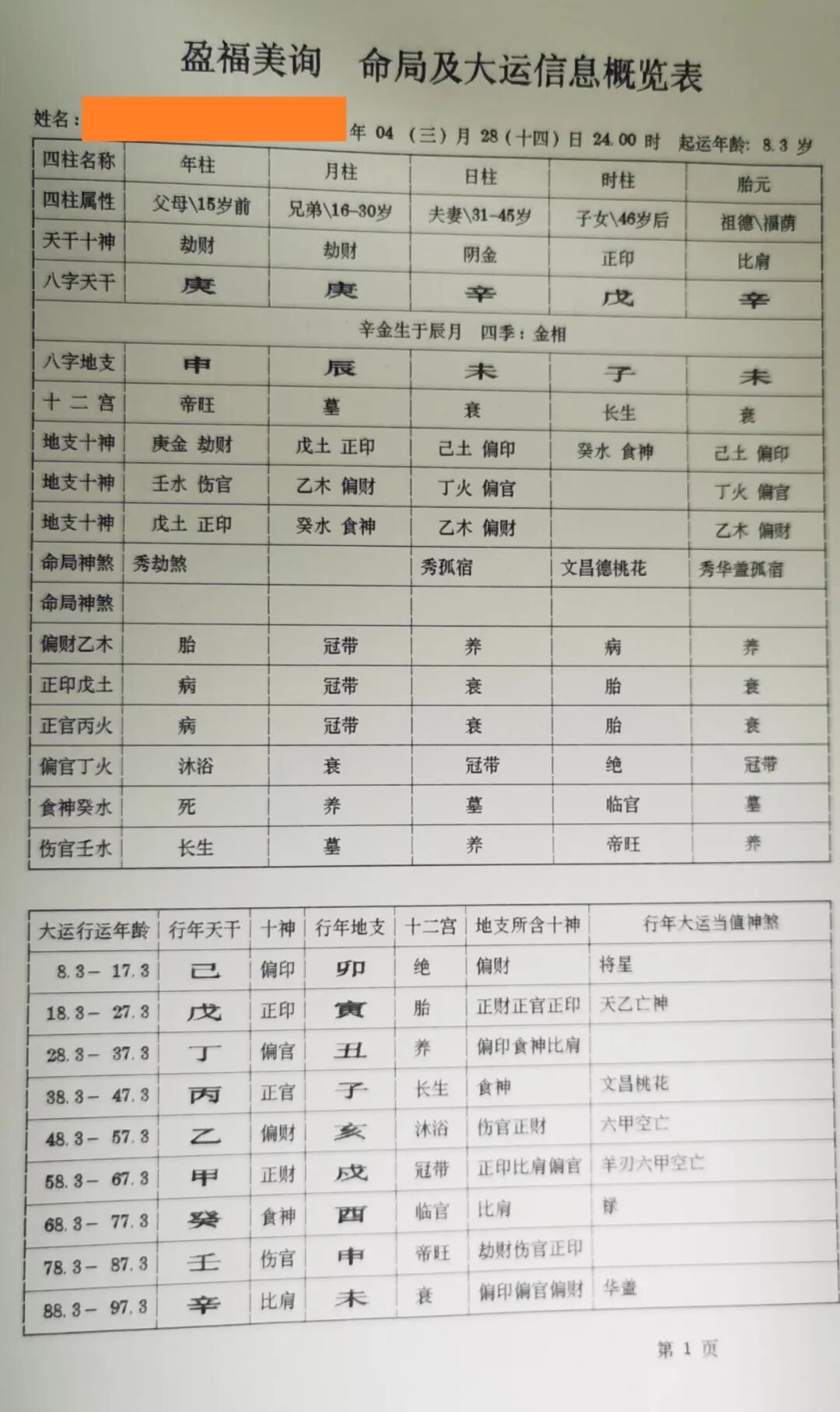 上图为1995年版四柱预测排盘,特别感谢好友石如建先生提供