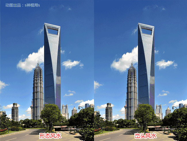 环球金融大厦的建筑造型在风水上运用了“形态风水”!也就是我们之前常提到的“呼形喝象”!